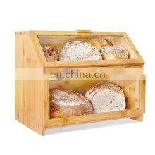 Extra Large Double Compartment Bread Box Bamboo Bread Storage Box With Clear Windows- Rustic Farmhouse Style Bread Holders