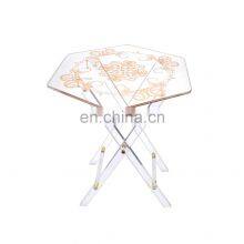 Modern Style Transparent Foldable Hexagon Acrylic Tea Table Coffee Desk for Home Decoration