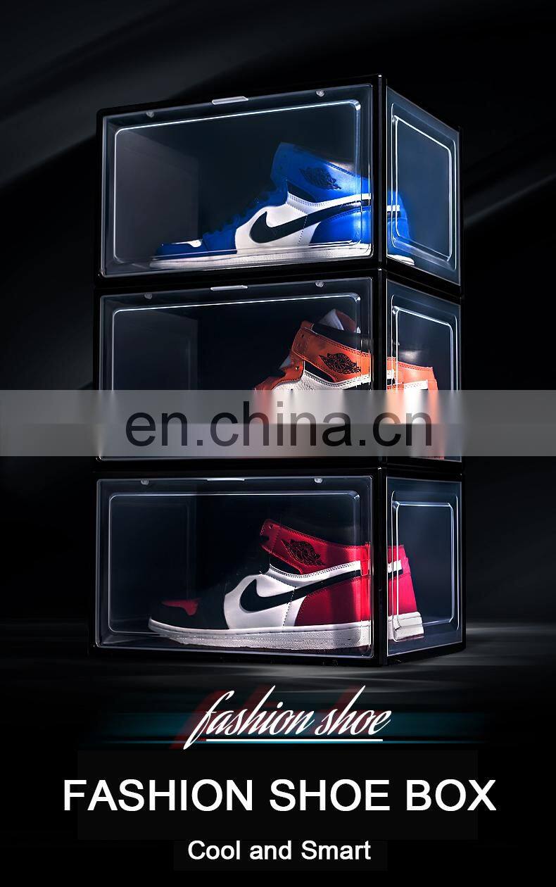 Wholesale Giant Custom Logo Transparent Stackable Magnetic Plastic Clear Shoe Storage Box