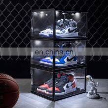 Acrylic Custom Transparent Shoe Box With Led Light Clear Magnetic Plastic Drop Front Stackable Sound Activated Led Shoe Box