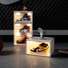 Acrylic Custom Transparent Shoe Box Display Clear Magnetic Plastic Led Shoe Box Light Drop Front Stackable Light Shoe Box