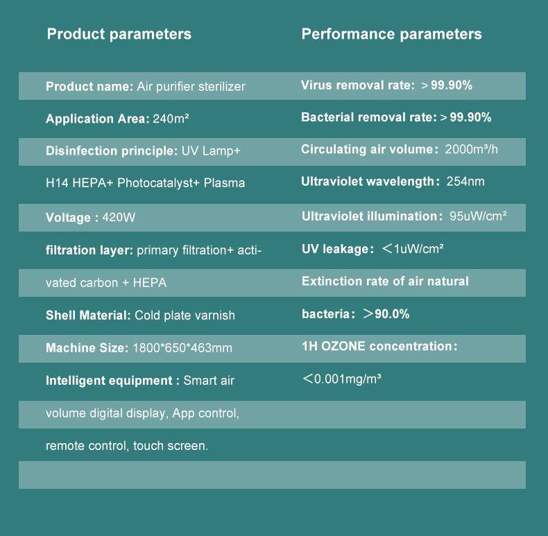Commercial Big Air Volume Air Purifier Uvc Light Sterilizer With Tuya APP Wifi Smart Control For Hotels Hospitals