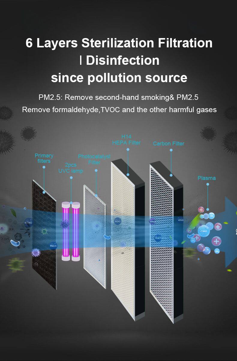 Yifil New High Quality H13 Medical HEPA DOUBLE Real Filter UVC Sterilization Lamp Air Purifier