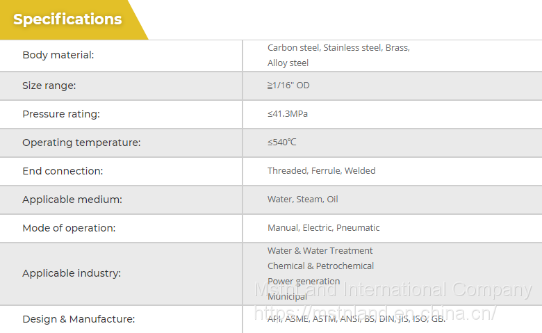 MstnLand's series of instrument valve is mainly used in the pipeline to cut off, distribution and change the flow direction of the medium, it only needs to rotate 90 degrees of operation and a small rotational torque can be closed tightly.