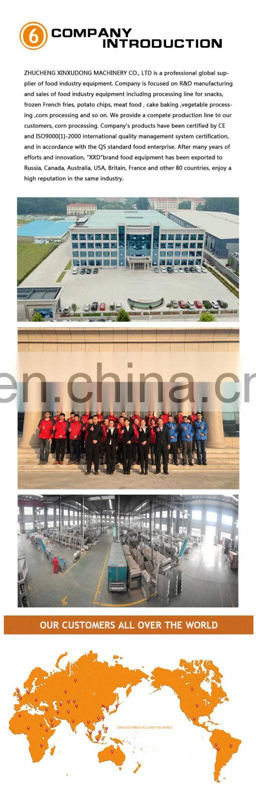 Shandong Xindaxin Food Industrial Equipment Co., Ltd. is a professional global supplier of food industry equipment. Company is focused on R&D manufacturing and sales of food industry equipment including processing line for snacks, frozen French fries, potato chips, meat food , cake baking ,vegetable processing,corn processing and so on. We provide a compete production line to our customers, corn processing. Company’s products have been certified by CE and ISO9000(1)-2000 international quality management system certification, and in accordance with the QS standard food enterprise. After many years of efforts and innovation, “TCA”brand food equipment has been exported to Russia,Canada,Australia, USA, Britain, France and other 80 countries, enjoy a high reputation in the same industry.