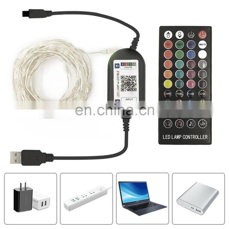 Smart RGB Christmas Tree Decoration String Light USB Powered Phone App Wireless Holiday Light With 40 Key Remote Control