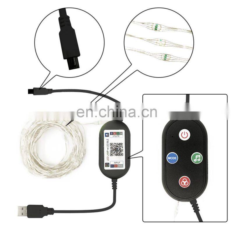 Home > Products > Led string light > Smart RGB Christmas Tree Decoration String Light USB Powered Phone App Wireless Holiday Light With 40 Key Remote Control