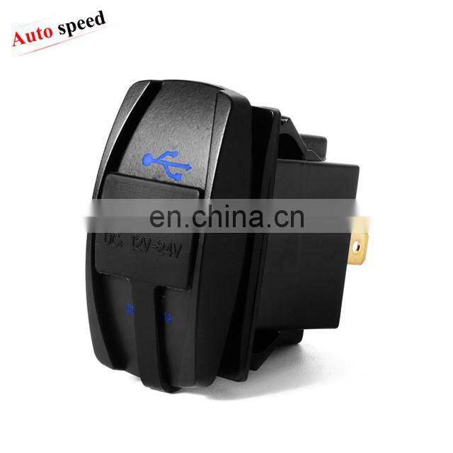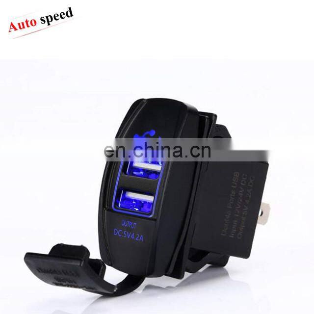 Home > Products > for Jeep wrangler accessories > 4.2 AMPS-Fast Dual USB Charger Rocker Switch Style Blue LED Back-lit for Boats, Jeep Wrangler