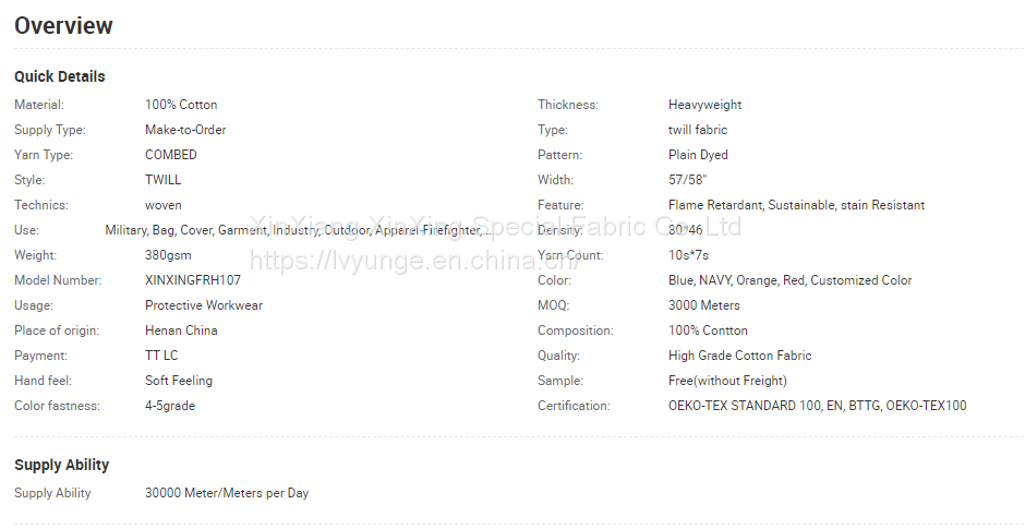 Home > Products > EN11612 certificate 380gsm 100% cotton woven flame retardant twill fabric for protective clothing > EN11612 Certificate 380gsm 100% Cotton Woven Flame Retardant Twill Fabric for Protective Clothing
