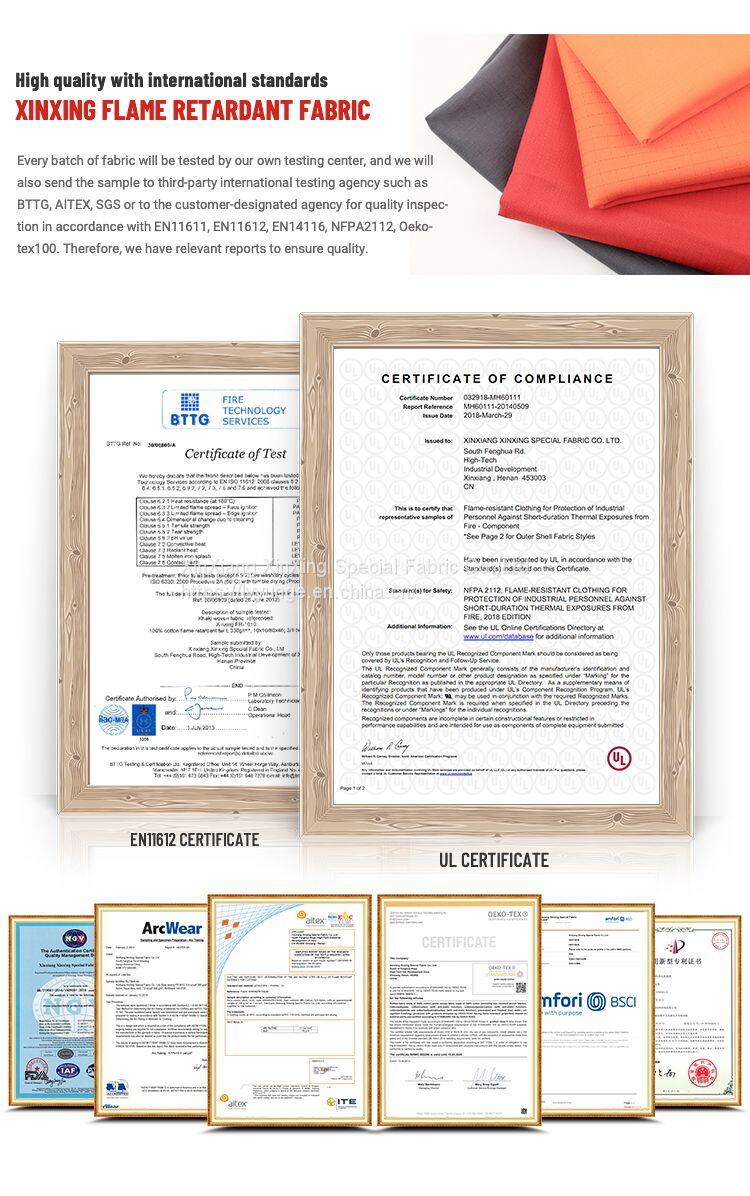 EN11612 Certificate 380gsm 100% Cotton Woven Flame Retardant Twill Fabric for Protective Clothing