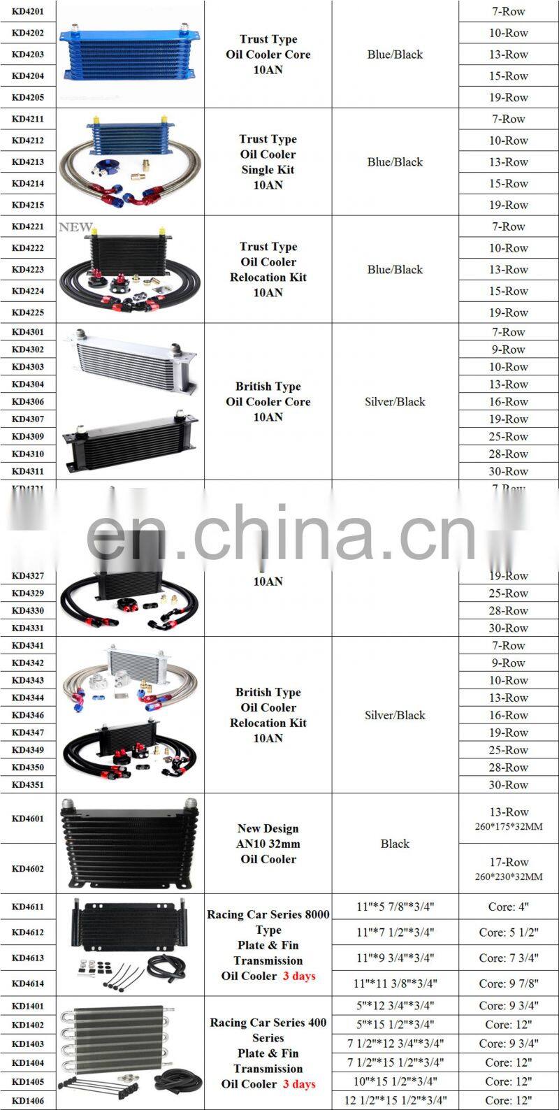 Performance Parts 10AN Oil Cooler 10 Row , Transmission Cooler 32mm