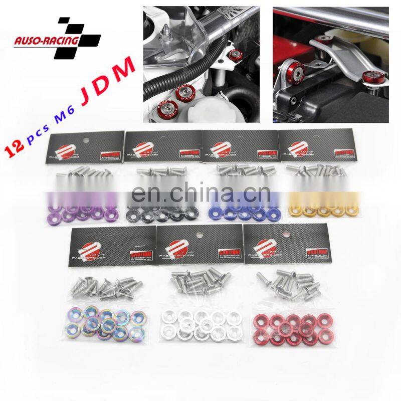 Home > Products > Engine Parts > AUSO 12pcs Set CNC Anodied Color Countersunk Washers M6 JDM Modification Aluminum Fender Washer With Bolt