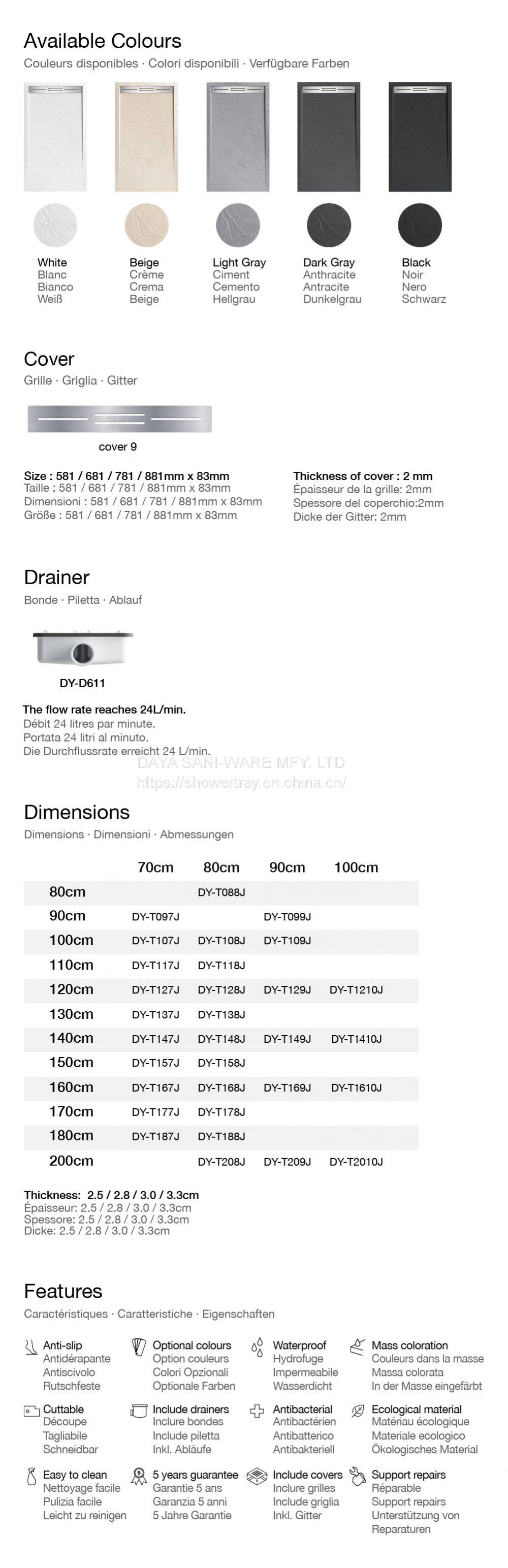 DAYA Stone Resin Shower Base Artificial Lightweight Resin Shower Tray