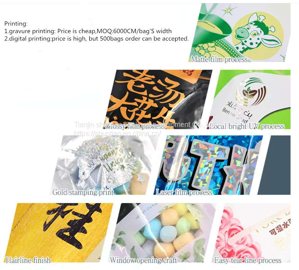 2. A variety of bag types are available, such as stand-up bag, three-side sealing, gusseted bag, middle sealing bag, etc
