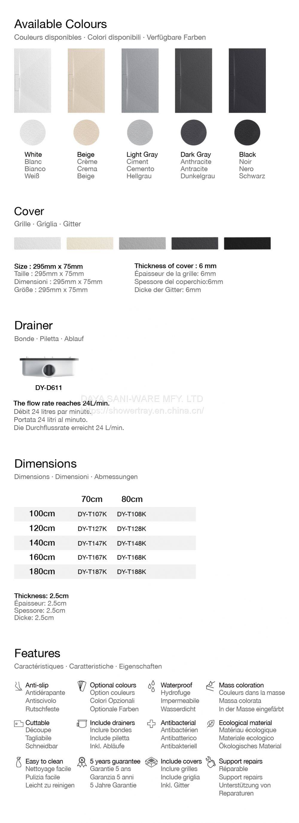 DAYA Shower Trays Piatto Doccia Resin Stone Solid Surface Bathroom Shower Pan
