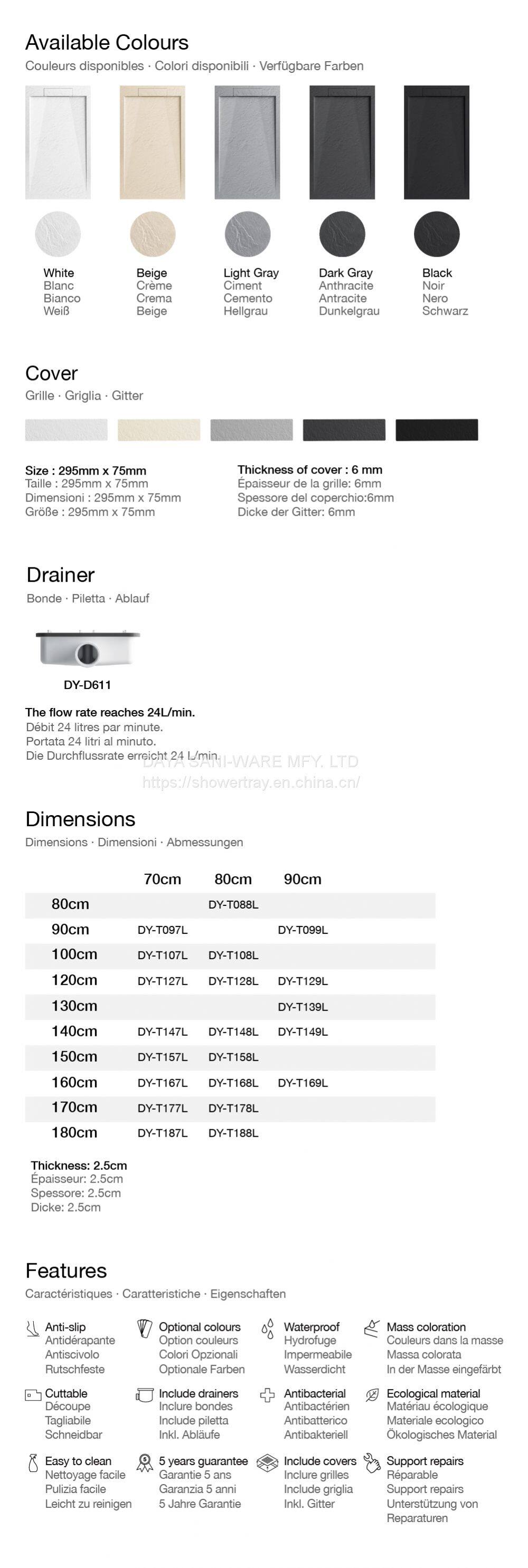 DAYA Shower Trays Piatto Doccia Resin Stone Solid Surface Bathroom Shower Pan