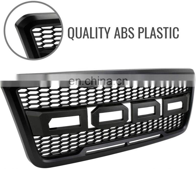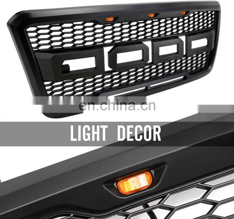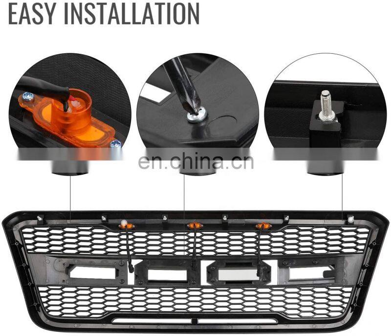 Front Racing Grille Grill for F-150 ABS Black Front Trim Replacement Grill Raptor Style With Led Fit for F150 2009-2014