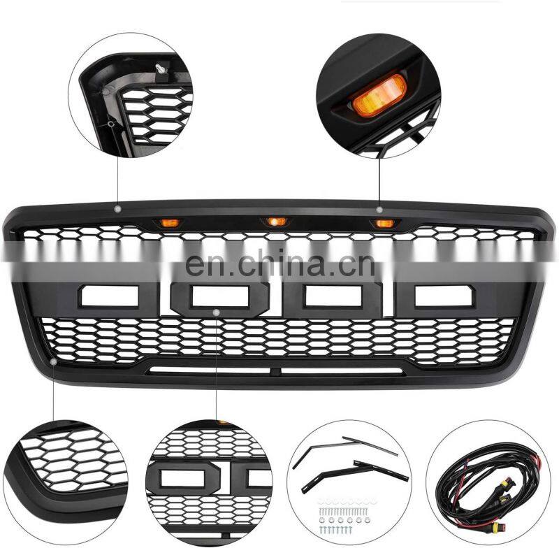 Front Bumper Grille Raptor Grille Front Racing Grille With LED Light for Ford F150 2004 2005 2006 2007 2008 ABS