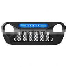 Matte Black With Lights Front Grill For 18-21 Jeep Wrangler JL & Gladiator JT