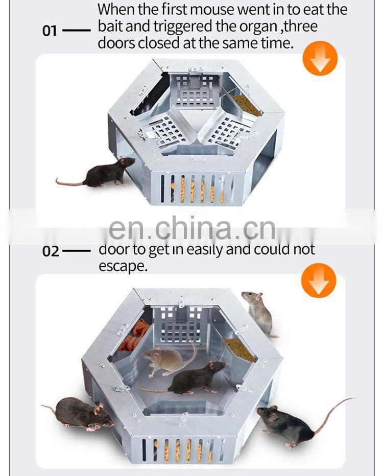 Home > Products > Mouse Killer > Factory Direct Price Humane Mouse Killer Trap Cage Three Door Hexagonal Mousetrap