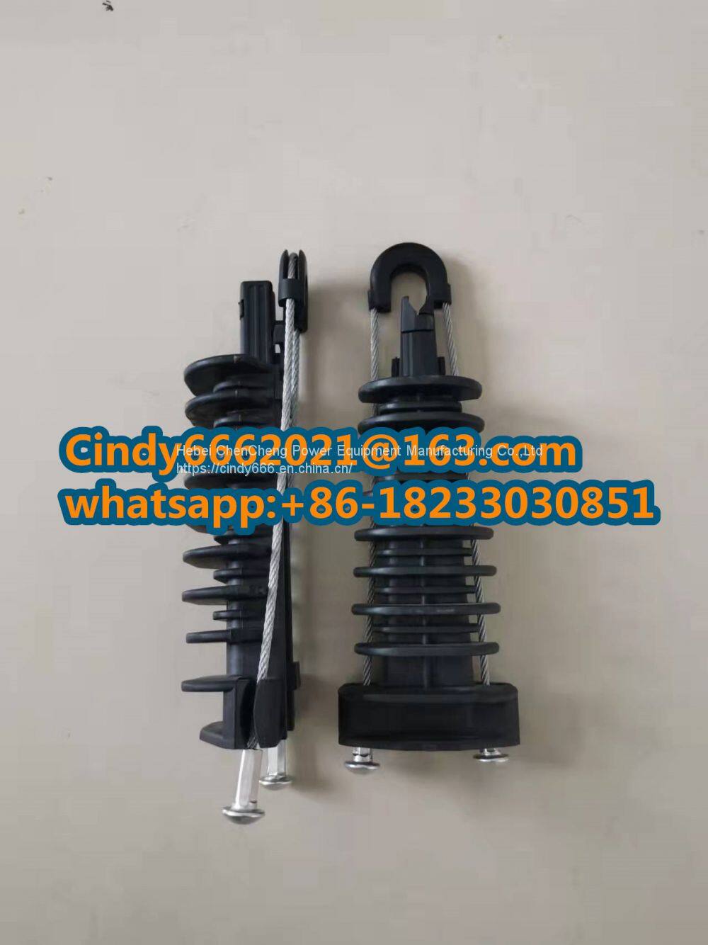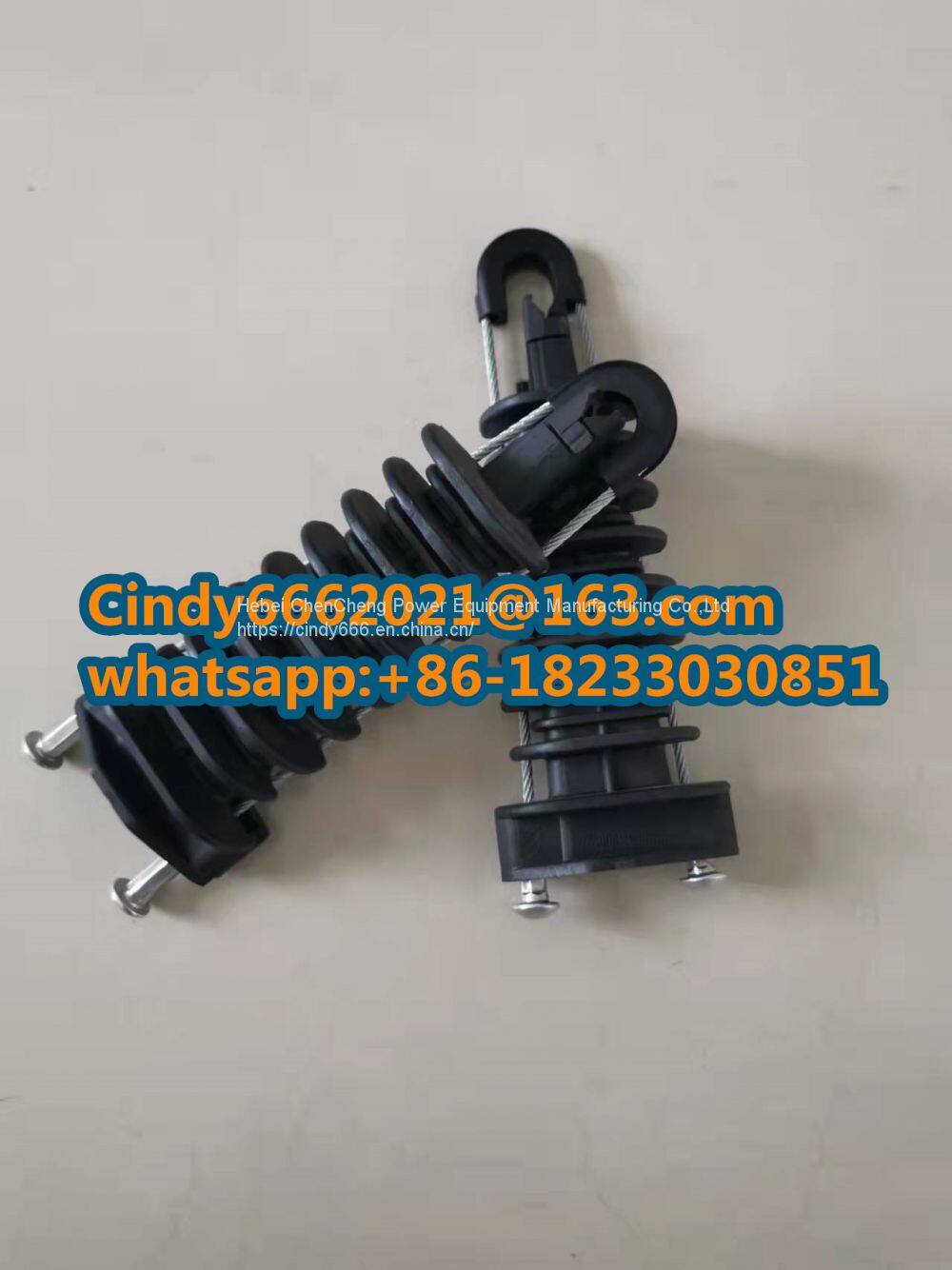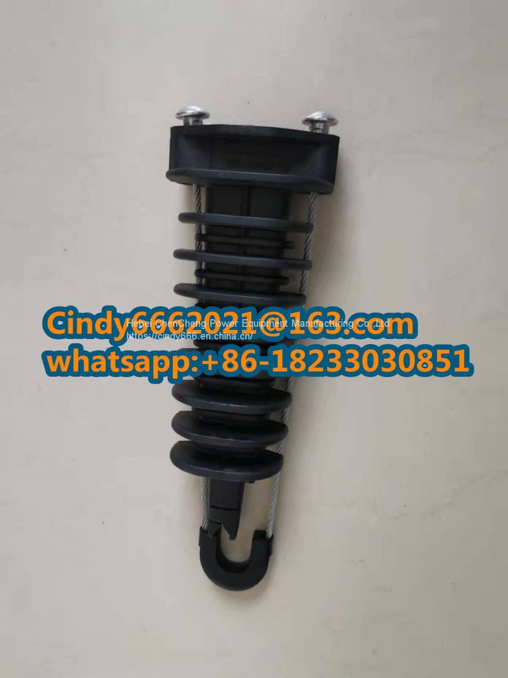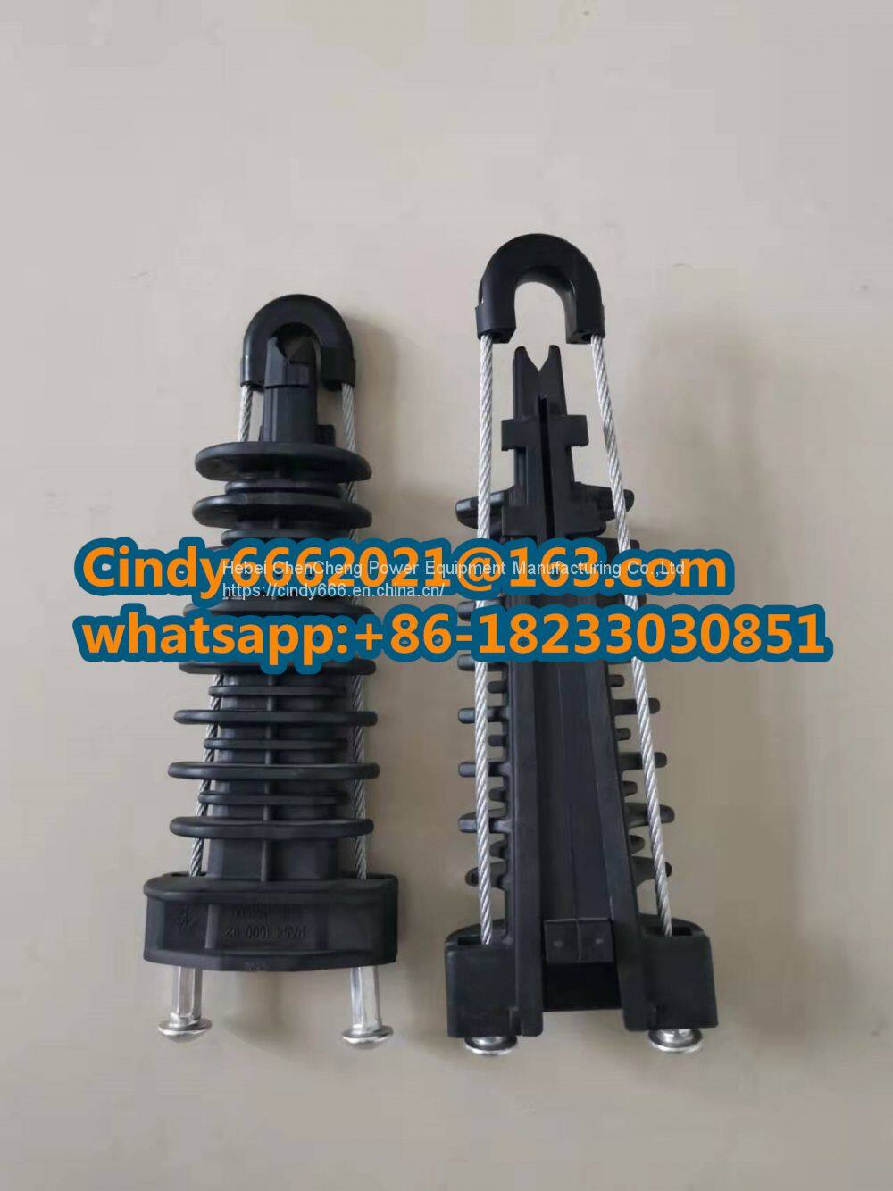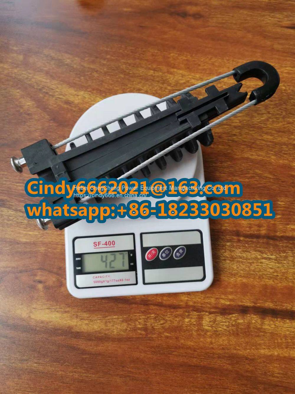 Low voltage Overhead Line Fitting plastic Anchoring clamp with stainless steel rope for optical fiber cables type ADSS, Automatic conical tightening. Opening bail easy to be installed.
