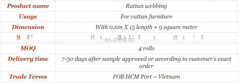 Product name | VIETNAM RATTAN CANE WEBBING |