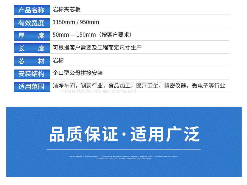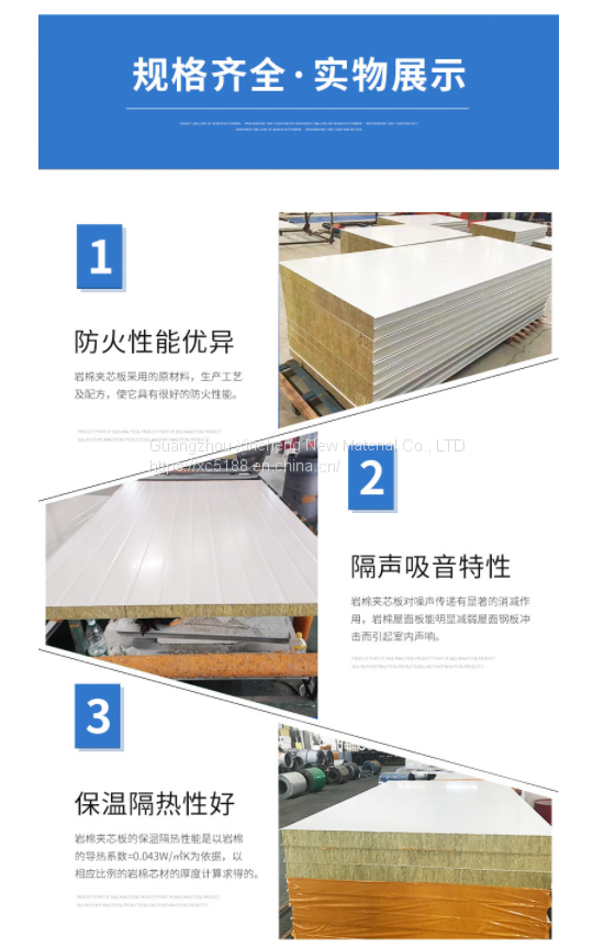 Rock wool sandwich color steel plate with high bearing capacity, good fire performance and sound insulation effect