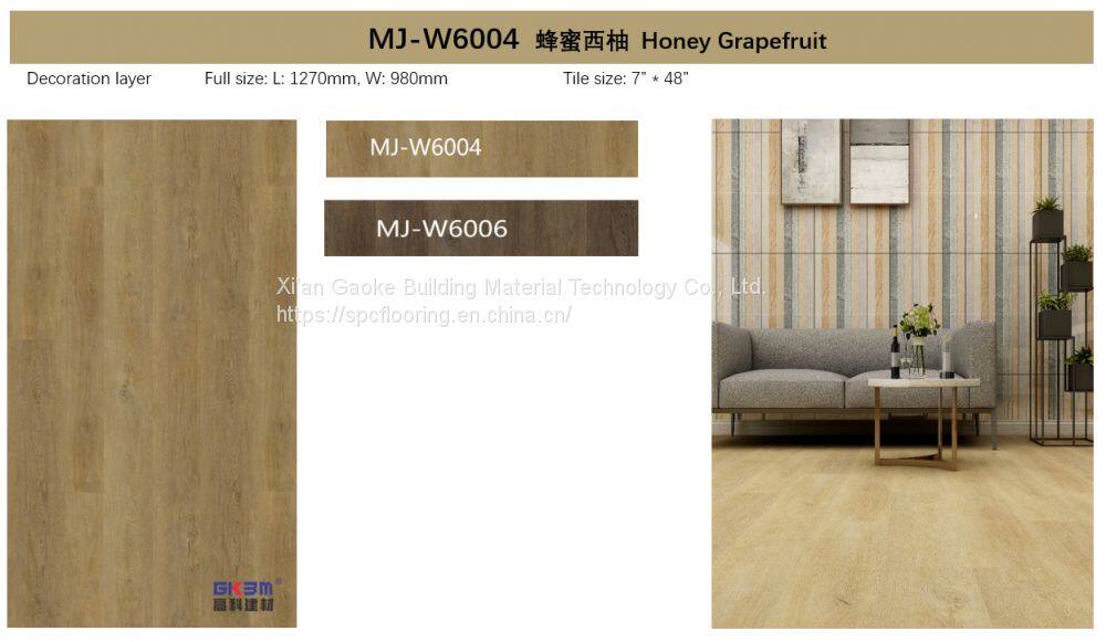 Home > Products > MJ spc flooring > GKBM Greenpy MJ-W6004 New Eco-Friendly Waterproof Honey Grapefruit Brown Click Wood SPC Flooring