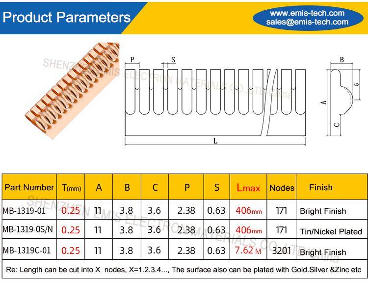 Customizable Products EMI Shielding Beryllium Copper Finger Strips