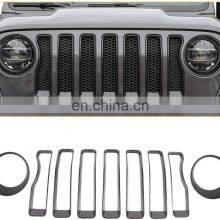 Black Front Grille Insert and Headlight Light Cover Trim Fit For 2018 Jeep Wrangler JL Sport/Sports
