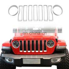 Silver Grille Grill Insert and Headlight Light Cover Trim Fit For 2018 Jeep Wrangler JL Sport/Sports