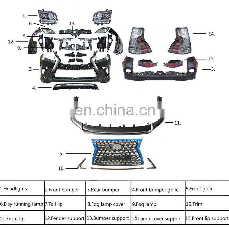 2010-2019 Style GX460 New Model Modified Front/Rear Bumper Grille Head Light and Tail Light to 2020 Model for Lexus GX460