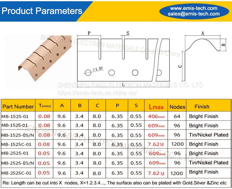 EMC Room Shielding Strip EMI Spring BeCu EMI Strip BeCu Contacts Spring Over 200 Items Standard Off -The Shelf Strips