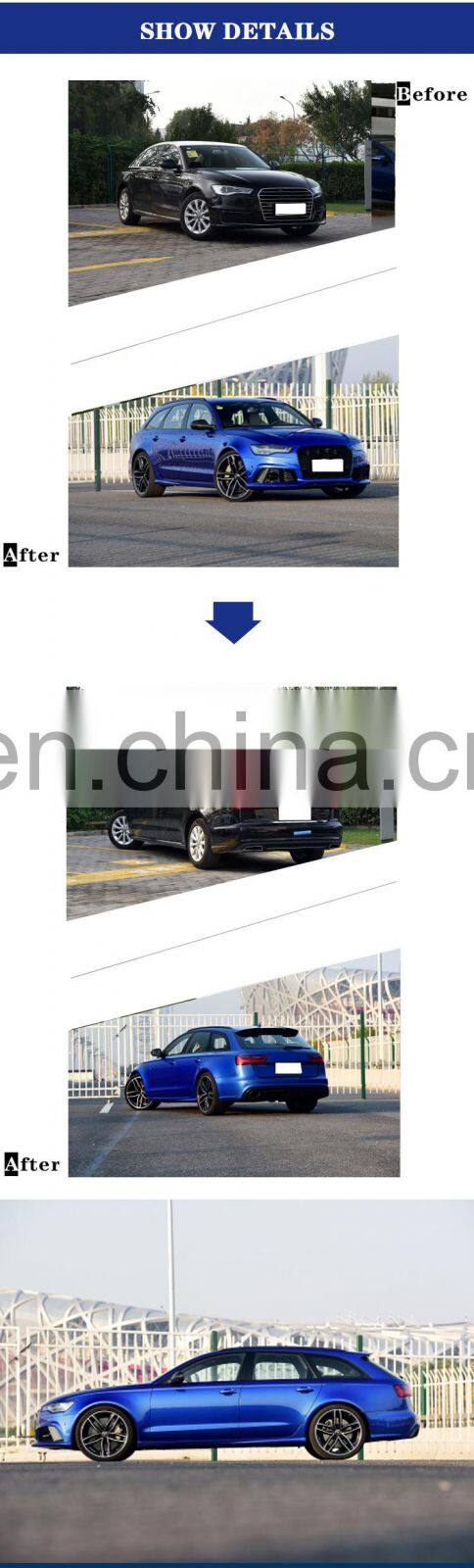 Home > Products > For Audi > CH Cheap Manufacturer Car Upgrade Grilles Roof Spoiler Rear Bumper Reflector Lights Bodykit Part For Audi A6L 2016-2018 To Rs6