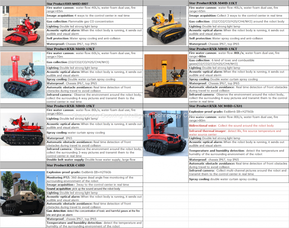 Fire Fighting Robot can replace fire fighter and resuer to enter the scene of inflammable,toxic,hypoxia,smoke and other dangerous disasters. It can effectively solve the personal safety problem in above places.