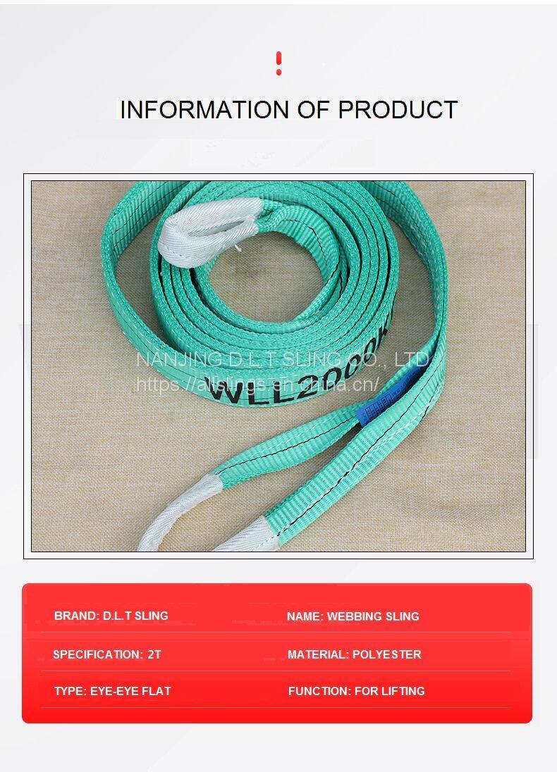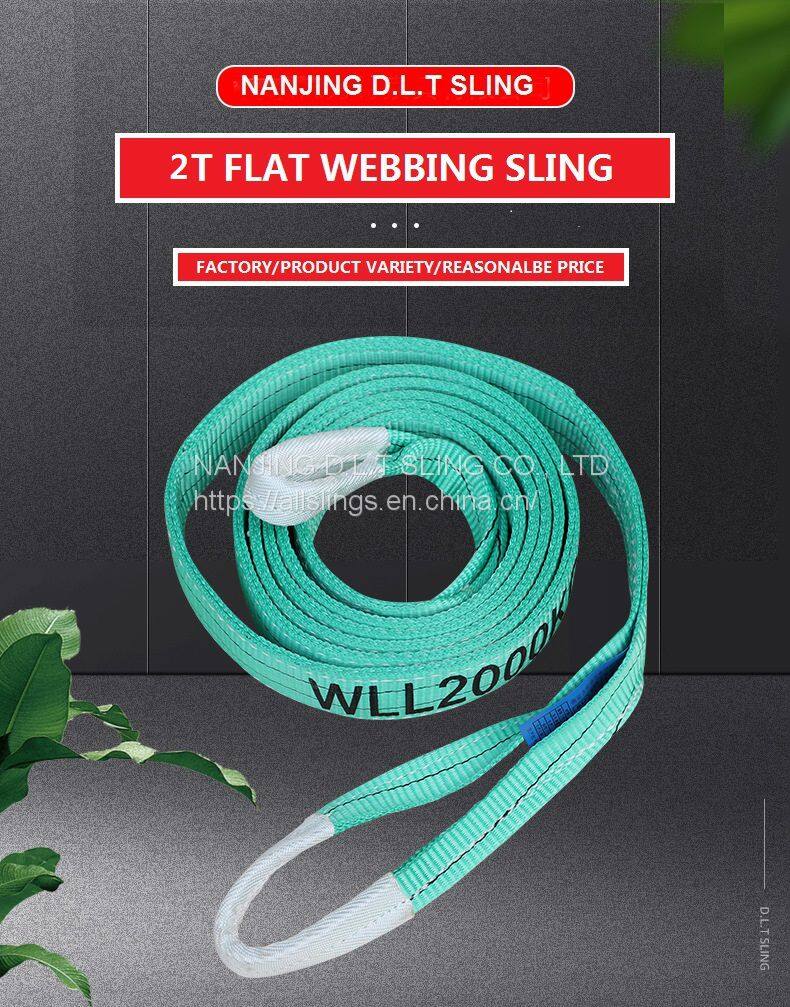 2T FLAT WEBBING SLING is one of the basic types of slings used as equipment for lifting devices and is made from 100% polyester with reinforced eyes, The WLL of the sling is 2000Kg , and has a maximum breaking strain of 7 times its WLL.