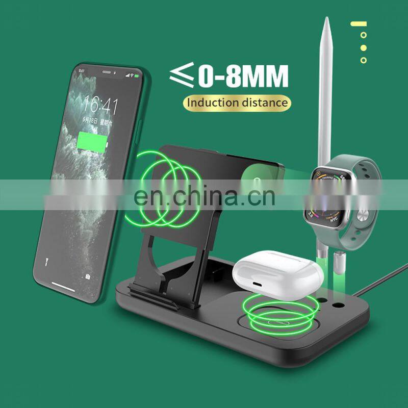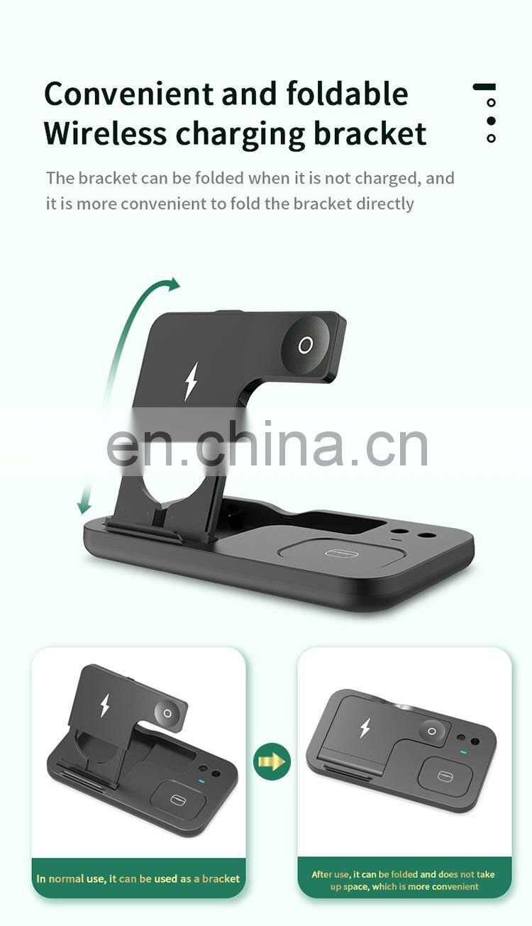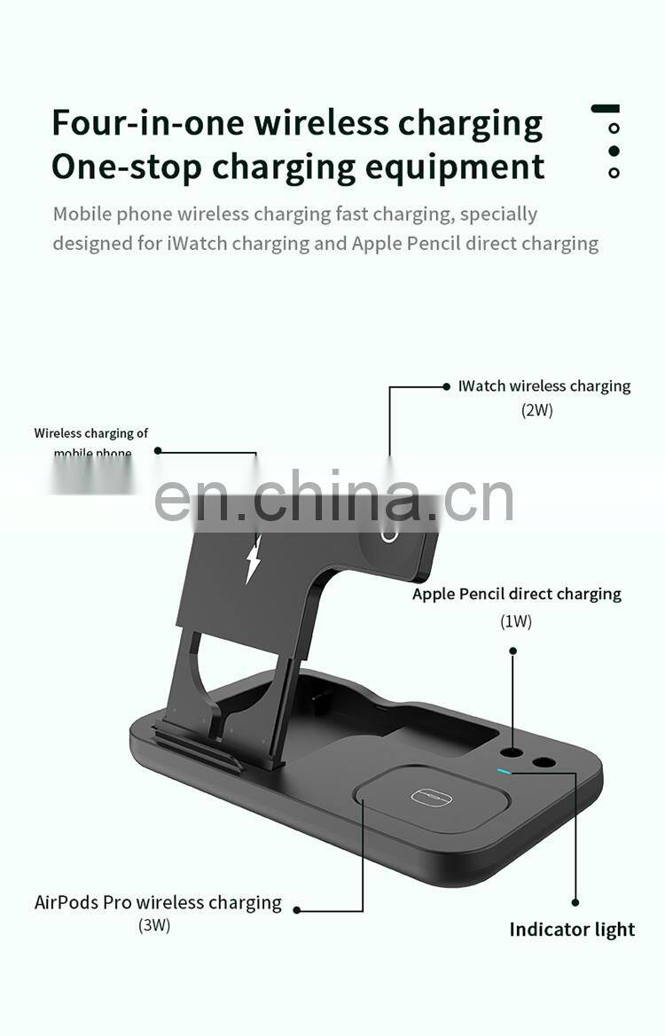 Portable 15w qi Fast Wireless Charger Stand 4 in 1 Wireless Charging Station