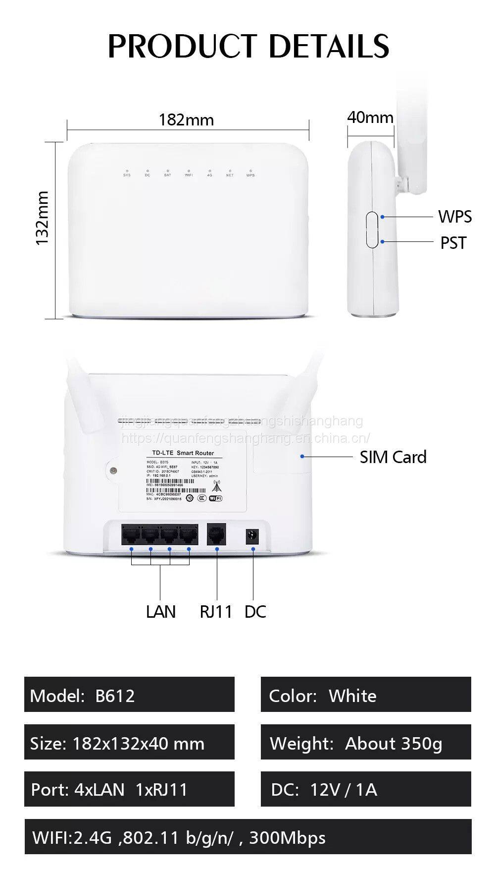 RJ45 Port Volte VOIP 300mbps B612 4G CPE Router with RJ11 Ports