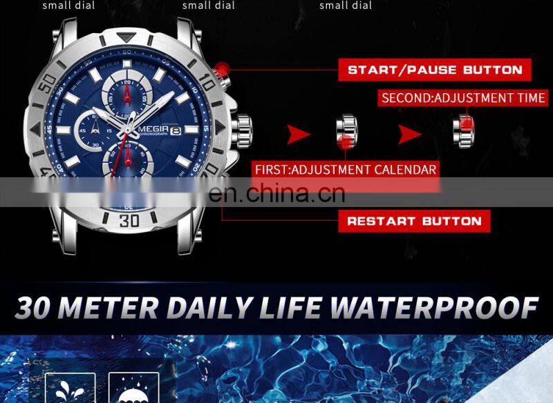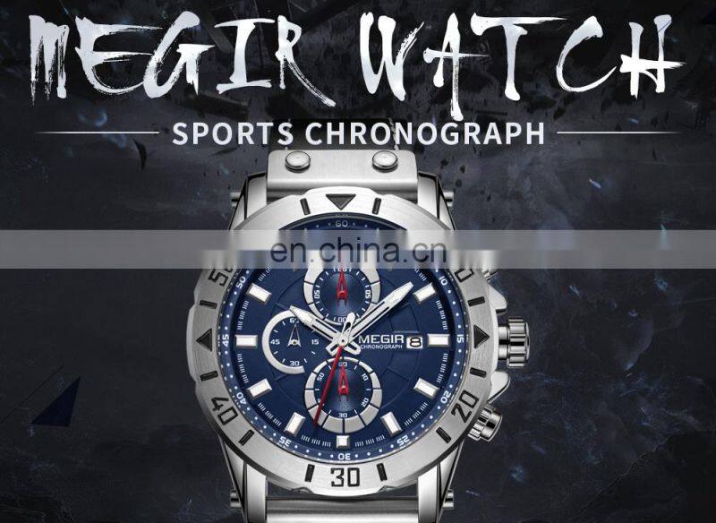 MEGIR 2121 Men Current Original Quartz Watches Silicone Strap Analog Calendar Stopwatch Man Sport Wrist Watch