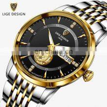 Lige 8913 Two Tone Desing Mens Quartz Wristwathces Waterproof Stainless Steel Men Luxuries Watches