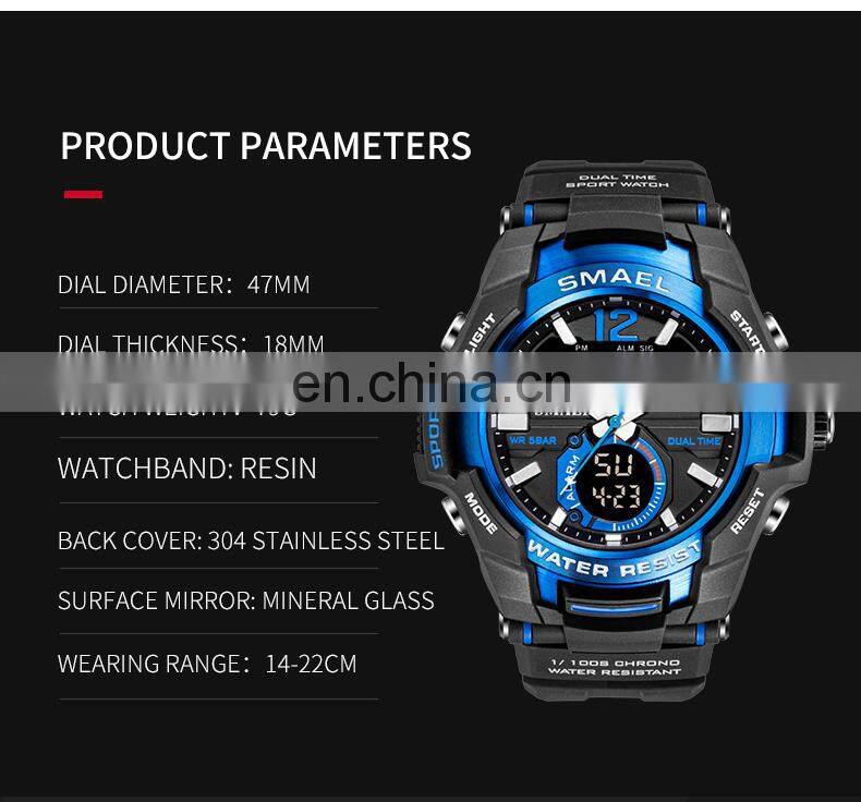 Home > Products > Digital Watch > Smael 1805 Personalized Digital Analogue Watches Waterproof Alarm Design Logo Custom Brand Mens Watch