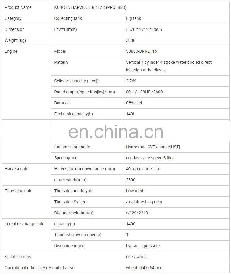 Multifunctional Kubota Harvester 988 High Productivity Rice Harvester Combine Stable Performance Cheap High Quality