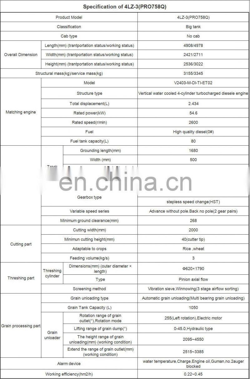 A: Yes, we can provide customized configurations such as grain tank type and rubber crawler width etc.