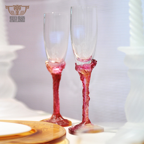 Colored Glass Goblet Dragon Phoenix Champagne Wine Champagne Glasses Cup Couple Wedding Crystal
