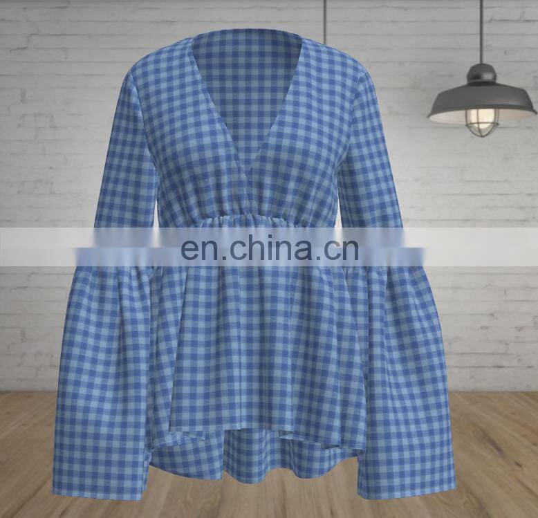 Popular Products Wicking Blouse Comfortable Artistic Check Fabrib