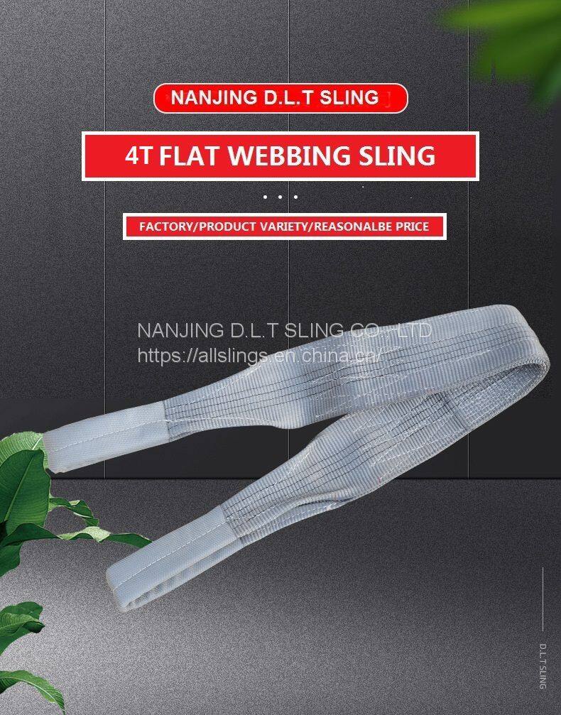4T FLAT WEBBING SLING are made in accordance with EN 1492-1 and are colour coded. They are made from high tenacity 100% polyester (PES) webbing material manufactured according to EN1492-1 standards. These slings are constructed in a double layer type and have 4 black lines on the face of the webbing. The number of black lines on the webbing indicates the safe working load of the sling.