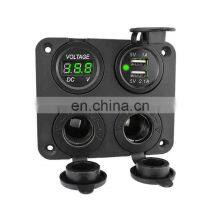 Car and Yacht Modification Four-hole Panel Combination + Dual USB Car Charger + Power Take-out Socket + Voltmeter + Round Switch