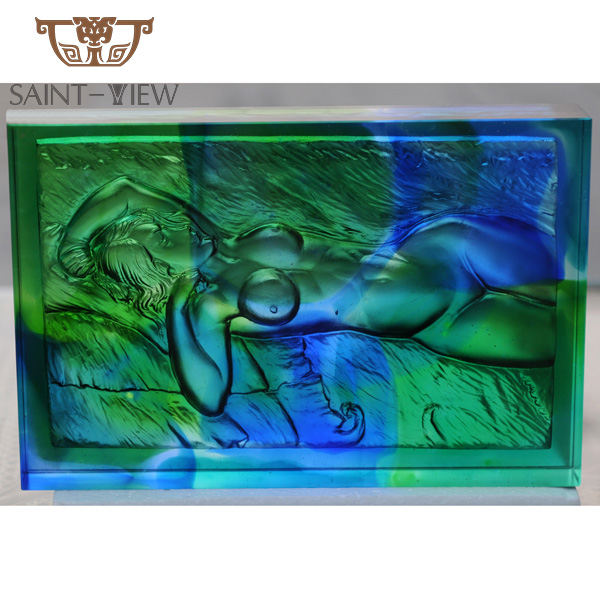 Custom Casting Art Crystal Glass Pate De Verre Nude Interior Decorative Wall Plaques Brick