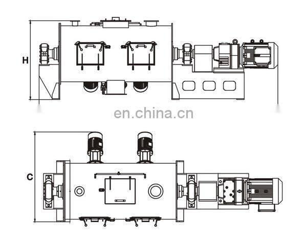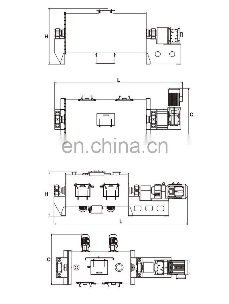 This machine is composed of container, screw stirring paddles and transitional parts; the screw paddle are generally made into 1 layer or 3 layers, the outer screw converge is the material to the centre front two sides, and the inner layer of screw conveys the material to the two sides from the centre, so as to form convection mixing. The cubage can be made into rotundity, so the jacket can be played in reaction and drying.