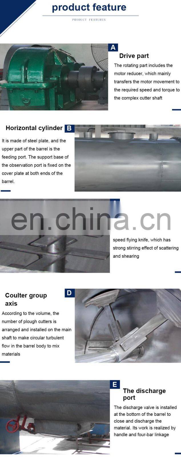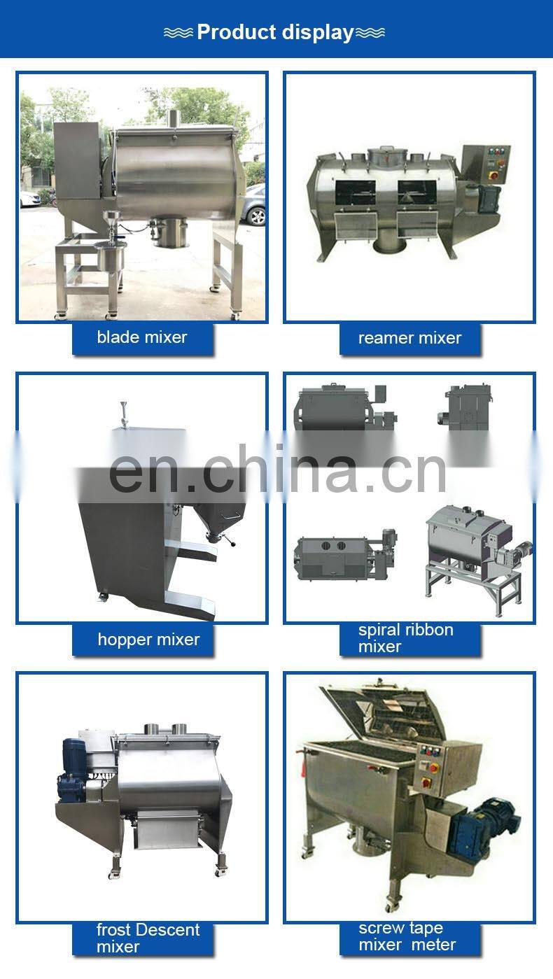 The ribbon mixer is generally used in the mixing of viscous or adhesive powder material, or the mixing of powder which needs to add liquid, and paste material. Meanwhile, because it is difficult to clean viscous material, the machine is suitable for the mixing case, where the output is large and there is no need of displacing material variety frequently.